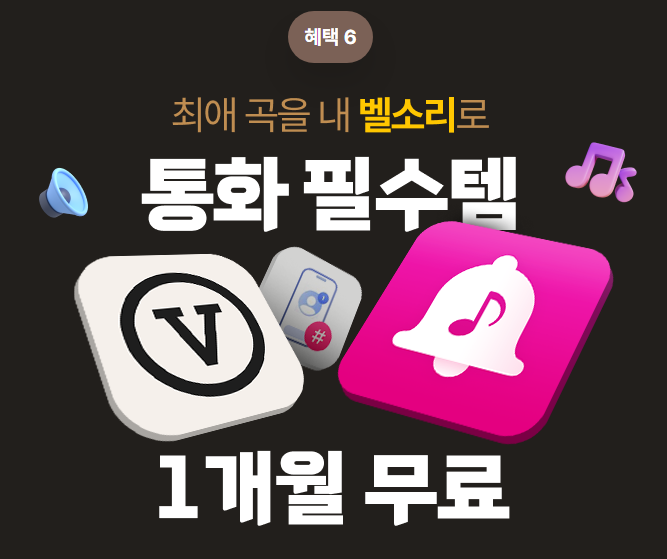 V컬러링 또는 벨음모아, 듀얼넘버 앱을 1개월동안 무료로 체험할 수 있는 이벤트를 진행합니다. 신청기간은 2월 5일~2월 29일까지 입니다.