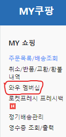 2. 다음으로 좌측 위에 보면 MY쇼핑창에 "와우 멤버십"을 선택합니다.
