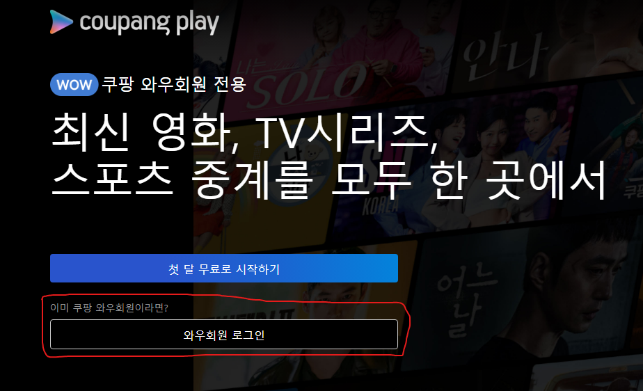 1.쿠팡플레이 홈페이지 (www.coupangplay.com)접속 후 [와우 멤버십 가입하기] 선택