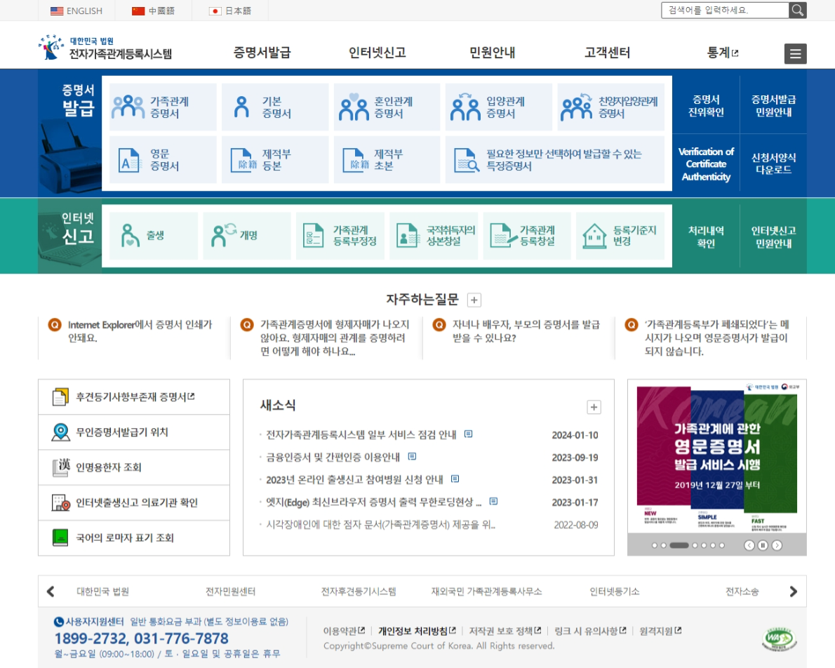 2. 대법원 전자가족관계등록시스템(https://efamily.scourt.go.kr)