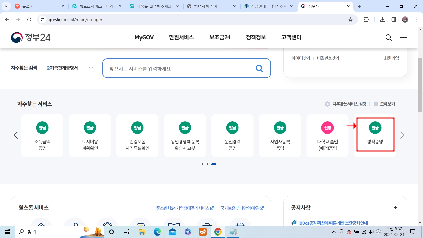 그리고 군대에서 복무중인 병사들은 병적증명서가 필요합니다. 이건 정부24에 접속하시면 무료로 발급 가능하니 프린트가 있으시면 아래의 버튼을 통해 편하게 발급받으세요!