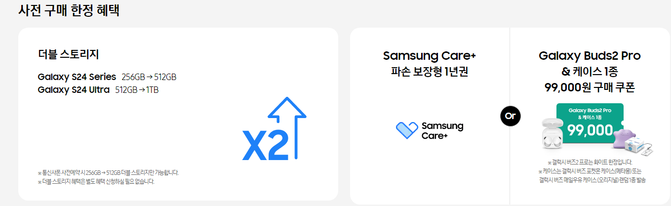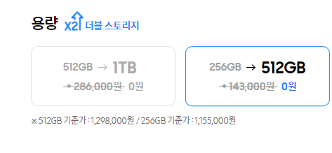 작년 S23이 출시되었을때도 용량 무료업그레이드 혜택을 받았었는데 이번에도 용량업그레이드를 무료로 해주고 있습니다.