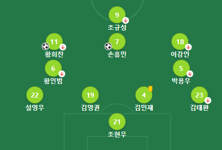 MF : 황희찬, 손흥민, 이강인, 황인범, 박용우