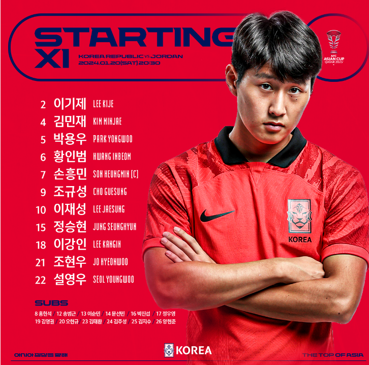 클린스만 감독은 이번 경기를 앞두고 무릎 십자인대 파열 부상을 당한 골키퍼 김승규(알샤밥) 대신 조현우(울산HD)를 투입시켰습니다. 그러나 나머지 10명의 선수는 바레인전 선발 명단과 같았는데요. 아마 이번에도 수비 위주의 전략으로 조를 짠 것 같습니다.